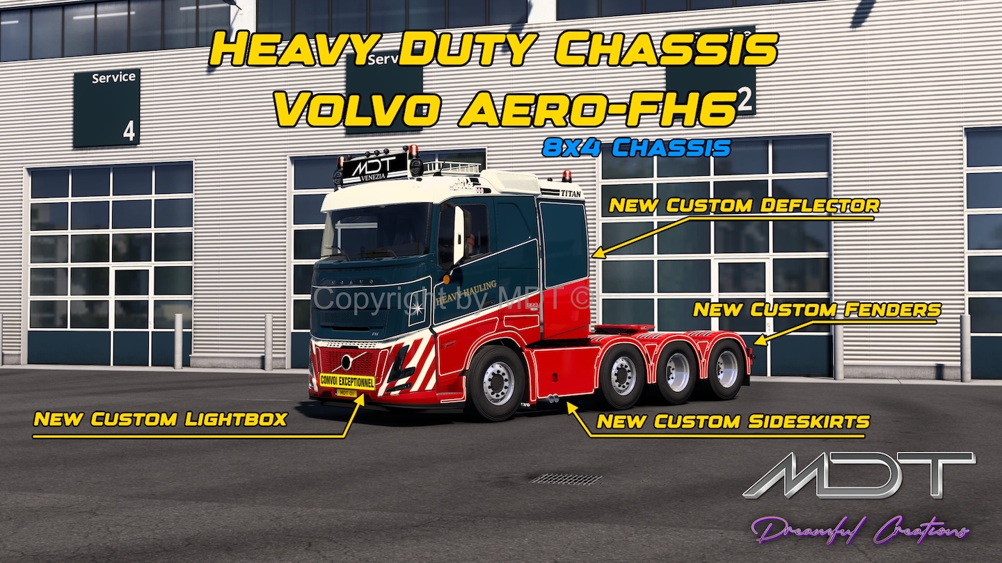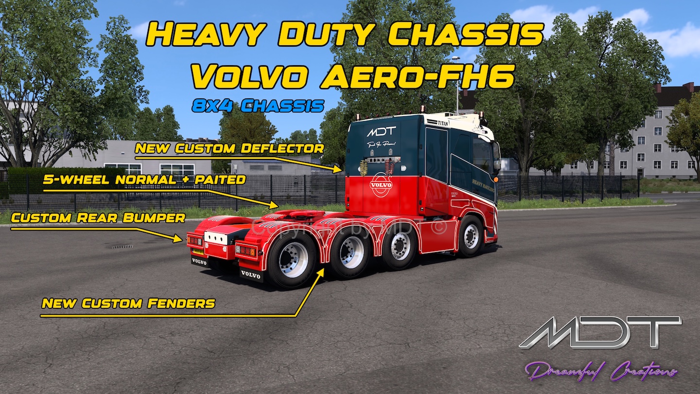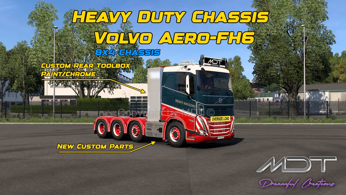 This new mod adds 5 new standalone chassis to the ETS2 game for SLEEPER and GLOBE Volvo FH6/Aero cabs!