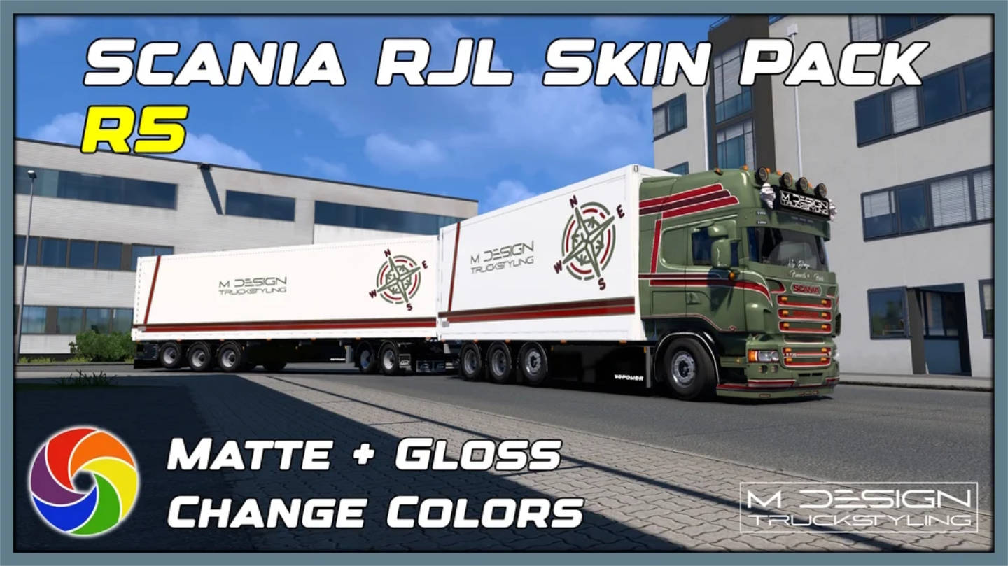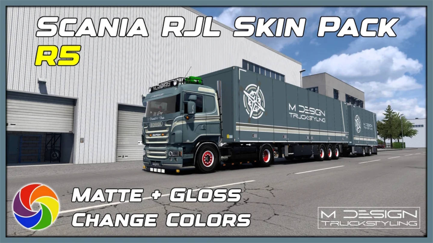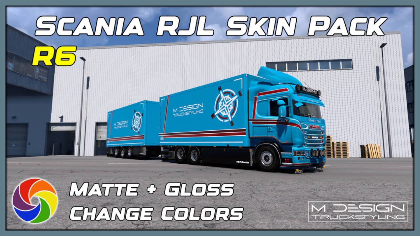 SCANIA RJL “HOLLAND” – MEGA SKIN PACK – MATTE + GLOSS MULTICOLOR – ETS2 MOD