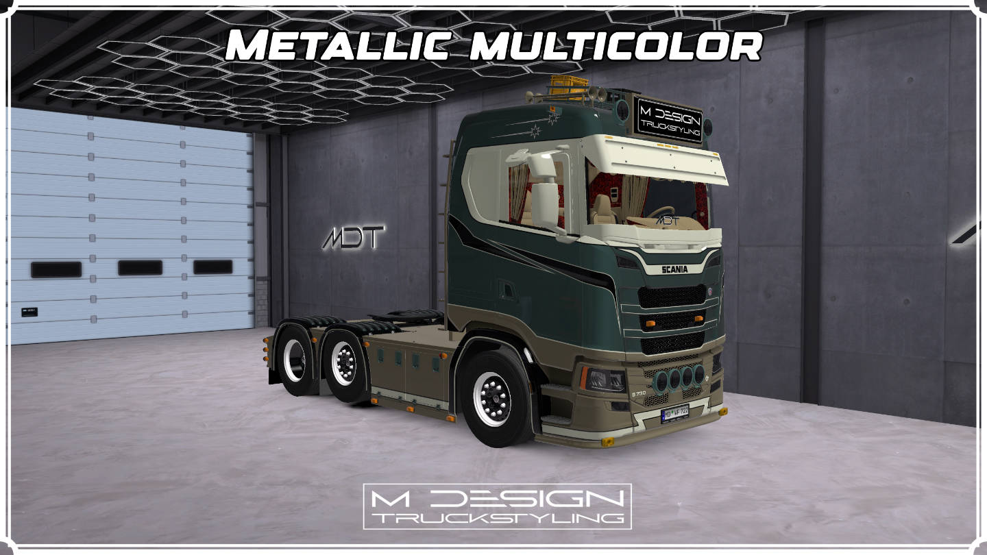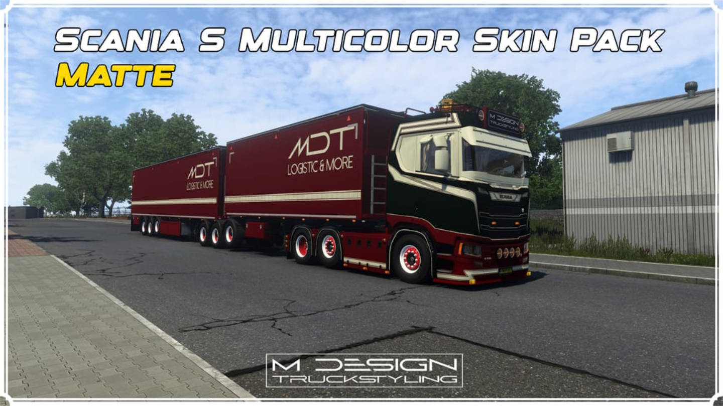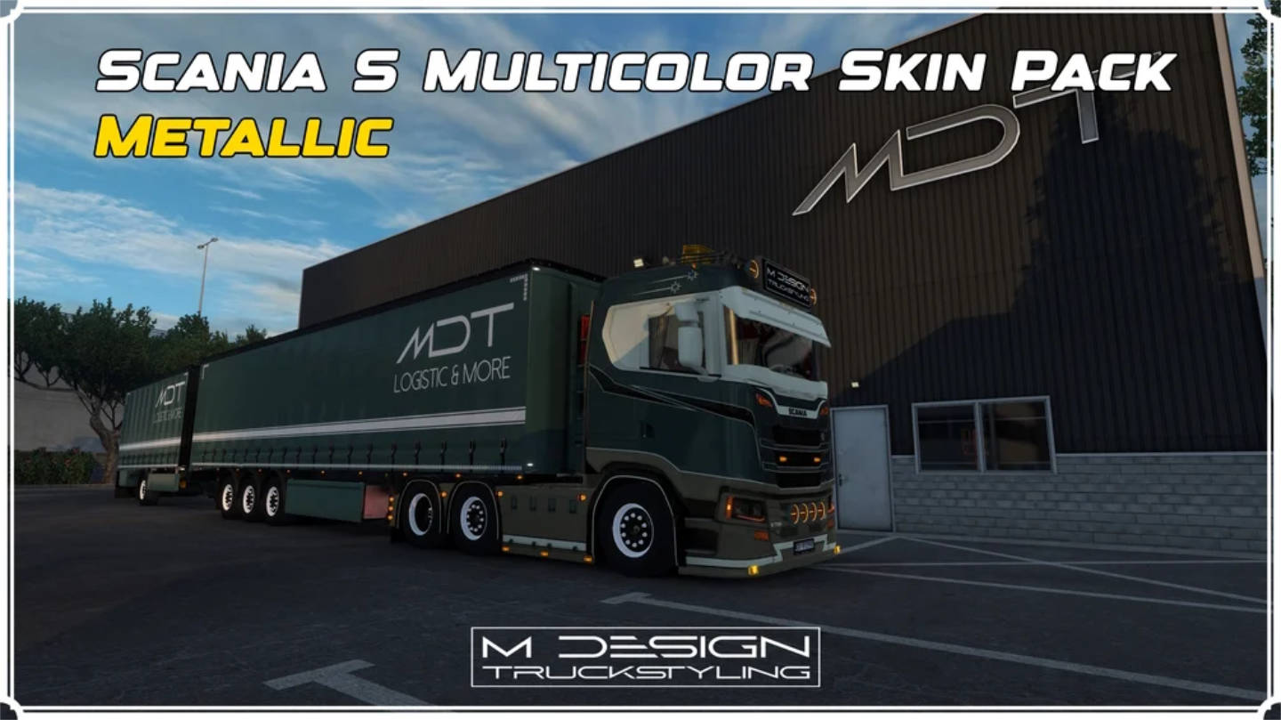 SKIN PACK SCANIA S MULTICOLOR METALLIC – MATTE – GLOSS + SCS TRAILERS | MDT | ETS2 MOD