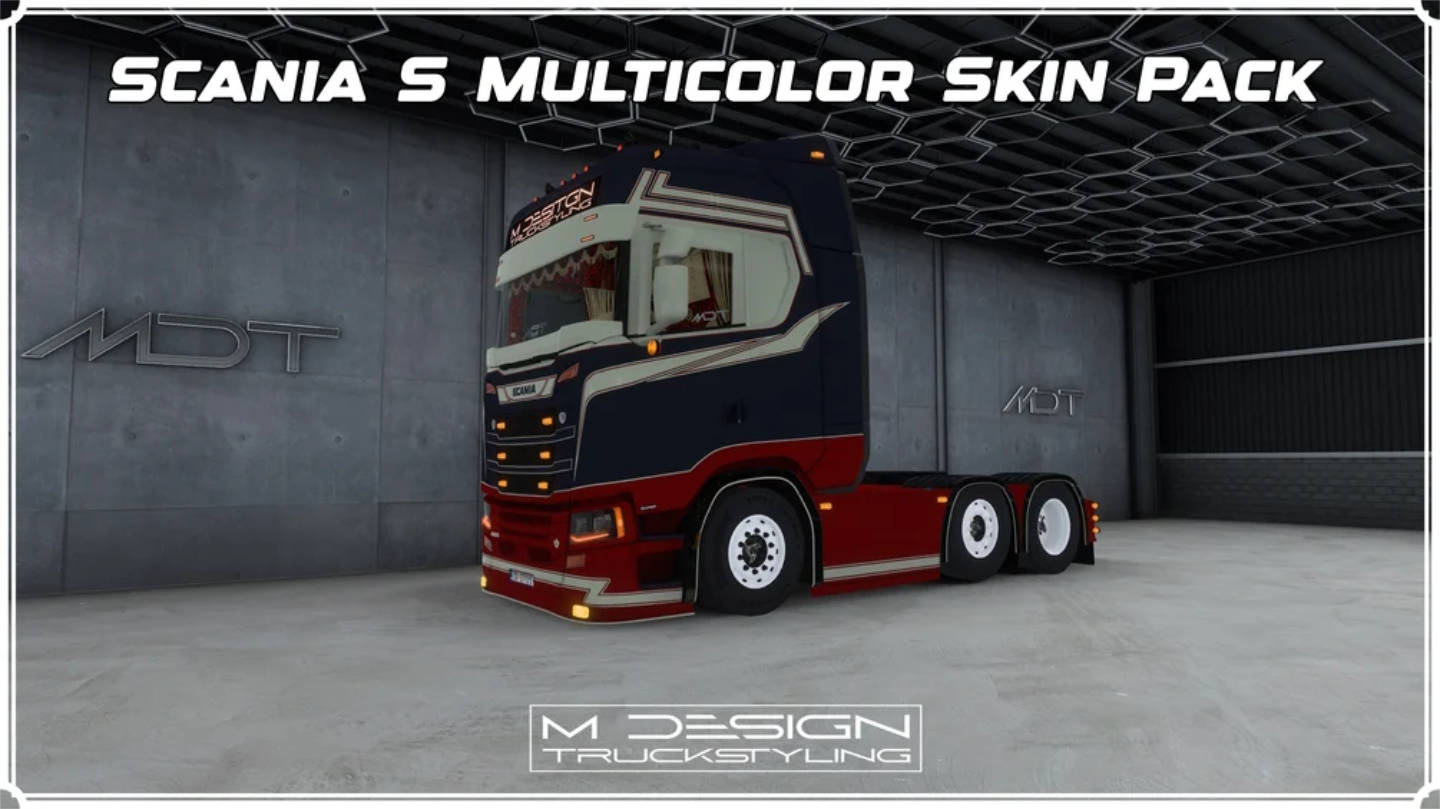 Multicolor Skin Pack for Scania S (SCS / PGRS) with VENUS Tuning Pack + SCS Standard Trailers.
